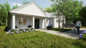 Parterowy dom zaprojektowany z myślą o maksymalnej funkcjonalności, oferujący przemyślany układ pomieszczeń, który zapewnia wygodę, swobodę i pełne wykorzystanie dostępnej przestrzeni na działce 800 m2 o regularnym kształcie.